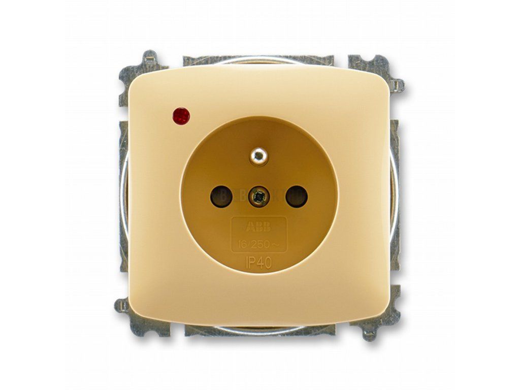 Zásuvka jednonásobná s ochranným kolíkem, s clonkami a s ochranou před přepětím 5599A-A02357 D béžová