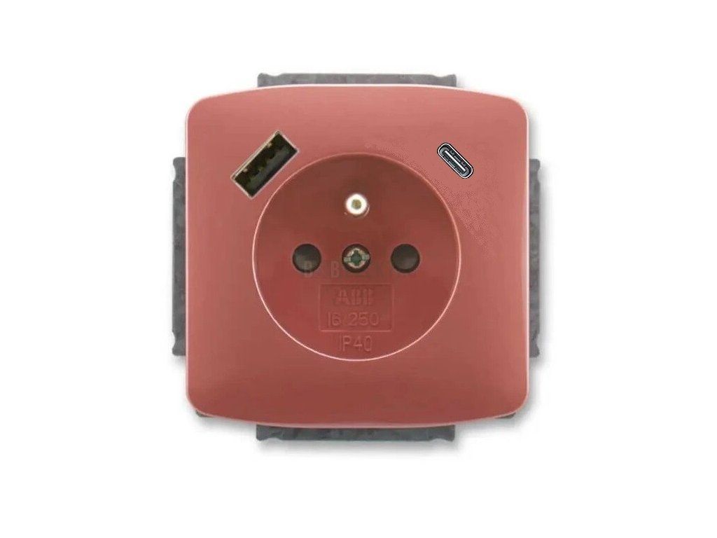 Tango® zásuvka jednonásobná s kolíkem, clonkami a nabíjením USB-A, USB-C 5569A-A32357 R2 vřesová červená ABB