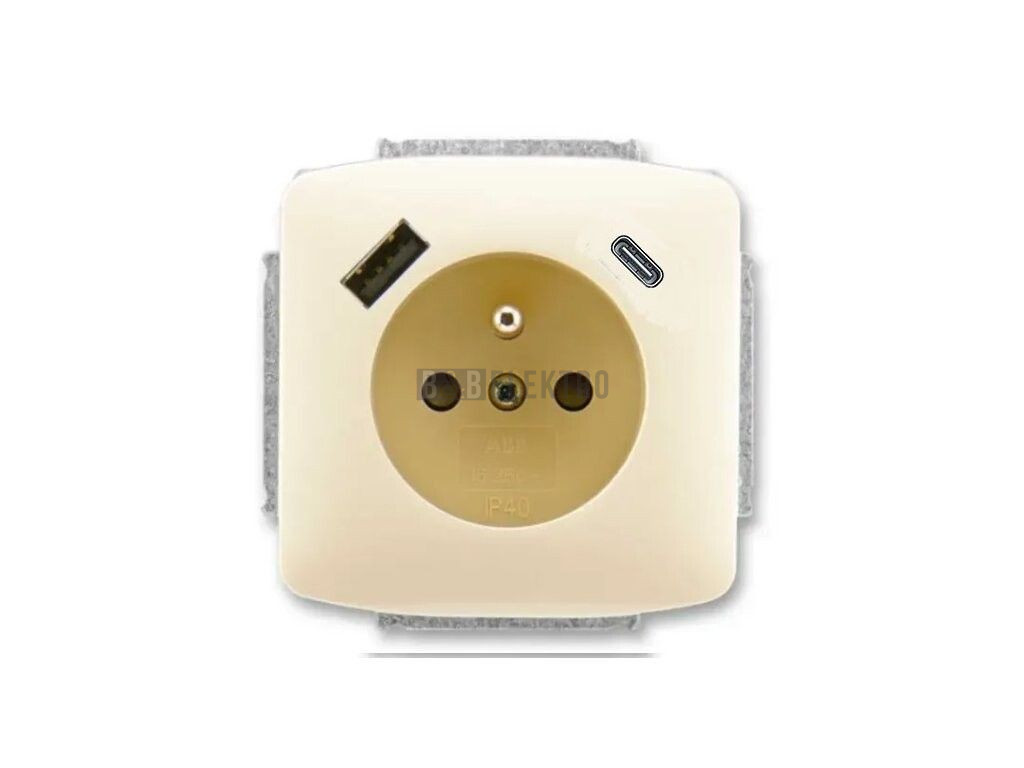 Tango® zásuvka jednonásobná s kolíkem, clonkami a nabíjením USB-A, USB-C 5569A-A32357 C slonová kost ABB