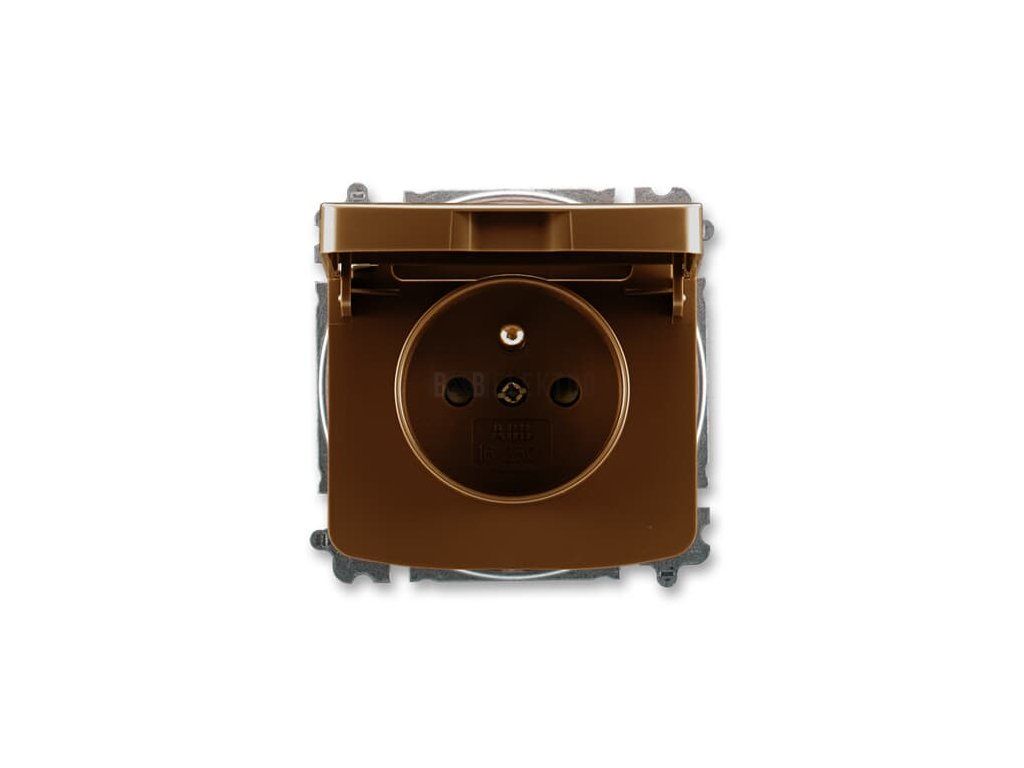 Tango® zásuvka jednonásobná s ochranným kolíkem, clonkami, víčkem, bezšroubové svorky 6619A-A06397 H hnědá ABB