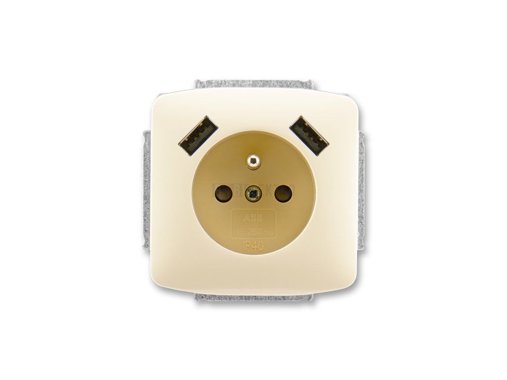 Tango® zásuvka jednonásobná s ochranným kolíkem, clonkami a nabíjením 2xUSB-A 5569A-A22357 C slonová kost ABB