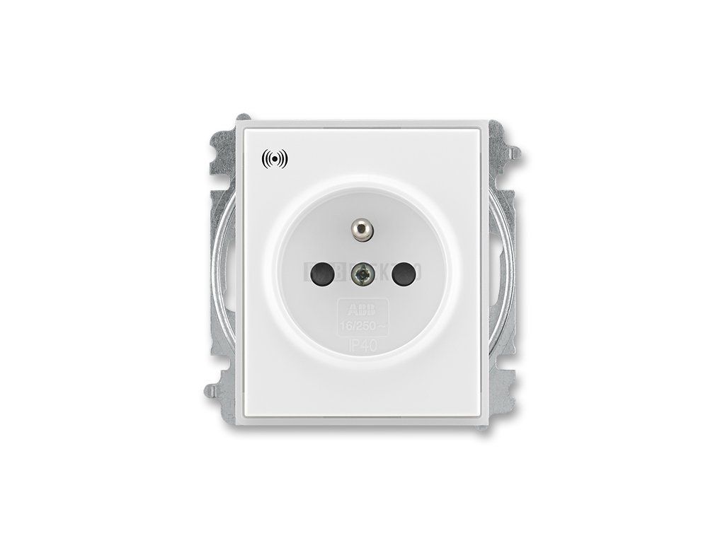 Time®, Element® zásuvka jednonásobná s ochranným kolíkem, clonkami, ochranou před přepětím 5589E-A02357 01 bílá/ledová bílá ABB