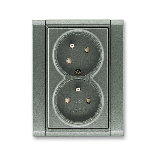 Time® zásuvka dvojnásobná s clonkami a natočenou dutinou 5513F-C02357 08 titanová ABB