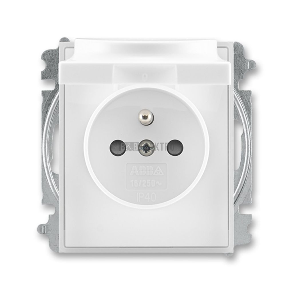 Time®, Element® zásuvka jednonásobná s ochranným kolíkem, clonkami a víčkem 5519E-A02397 01 bílá/ledová bílá ABB