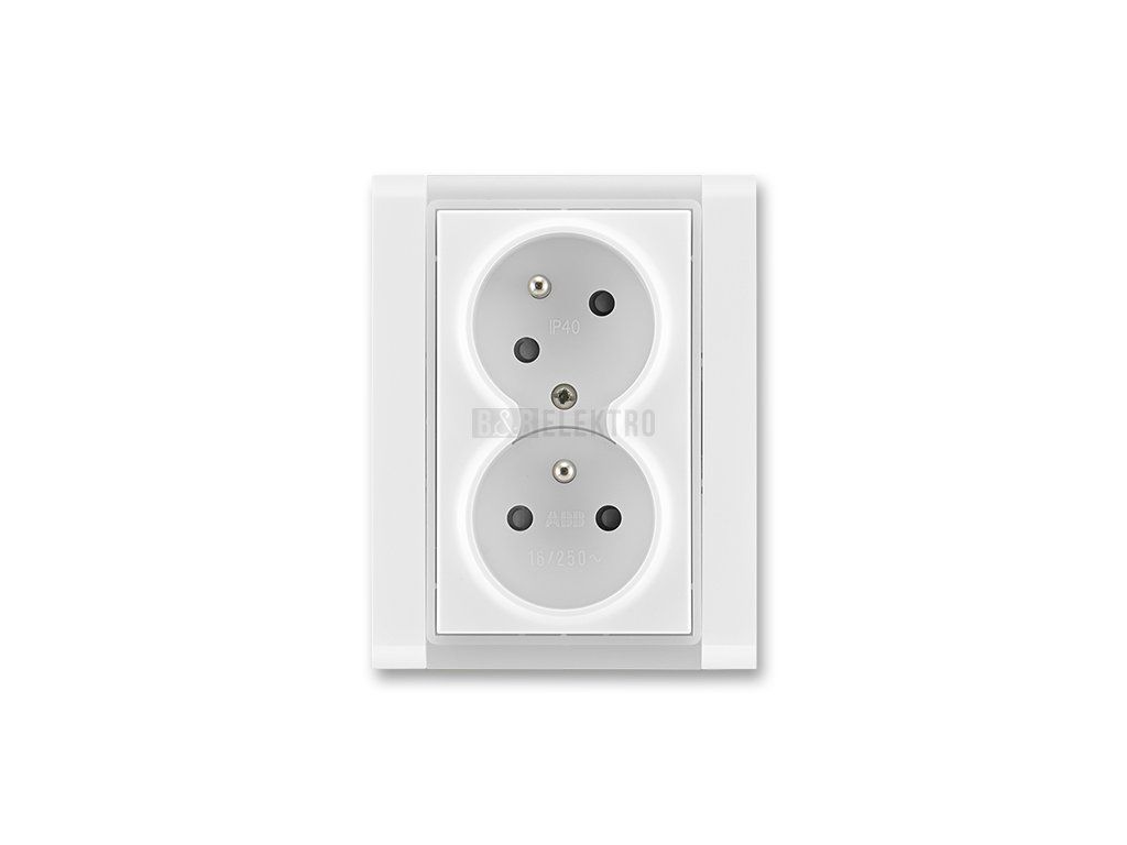 Time® zásuvka dvojnásobná s clonkami a natočenou dutinou 5513F-C02357 01 bílá/ledová bílá ABB