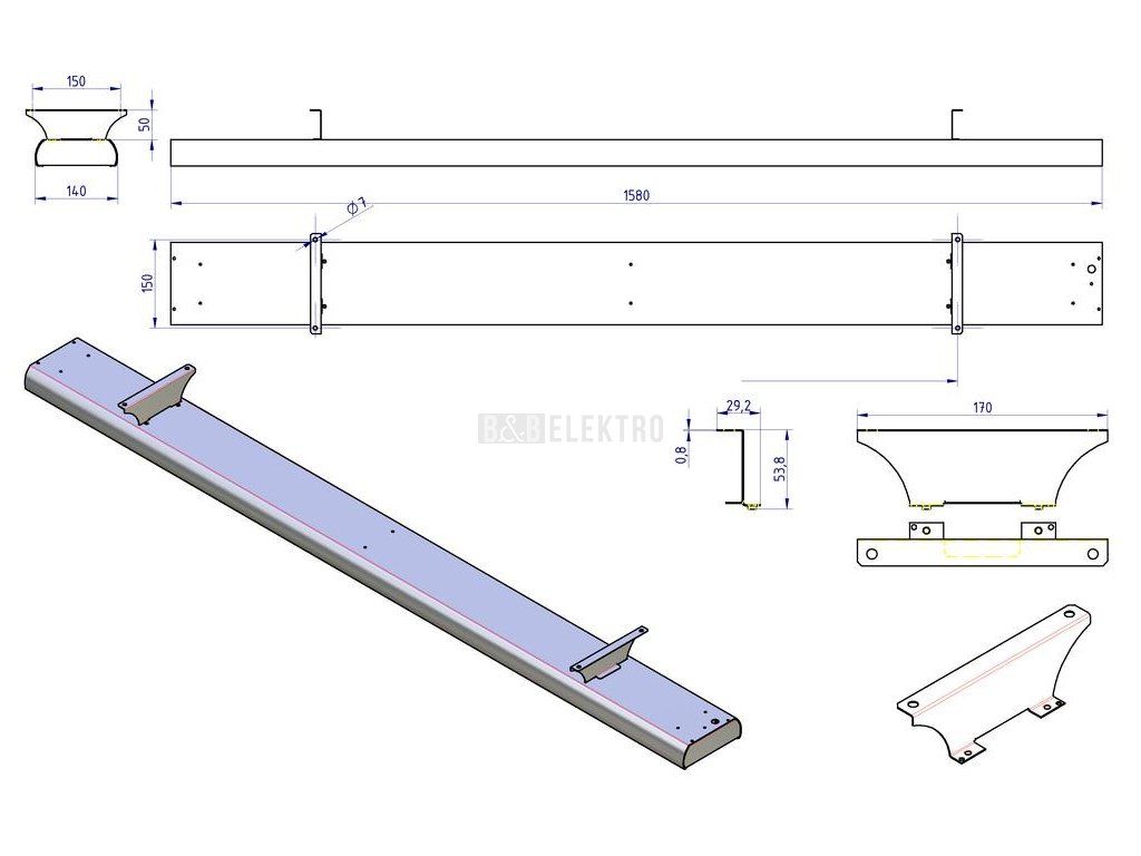 rozměry: 730 x 155 x 115 mm včetně ochranné mříže a úchytů