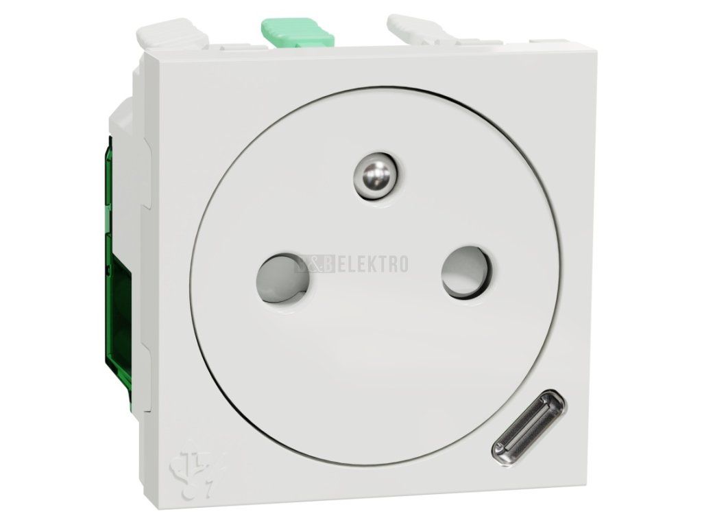 Unica NU301518E Zásuvka skrytá 250V/16A + USB-C 10.5W, 2.1A, bílá, Schneider Electric
