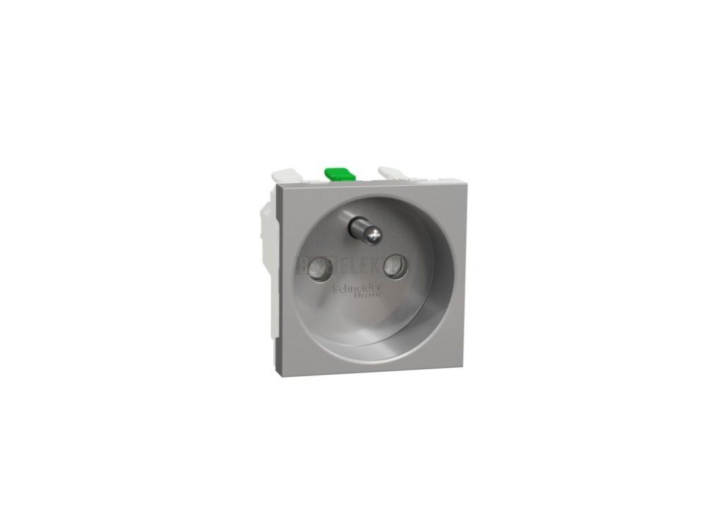 Unica NU305930E Zásuvka 250V/16A 2P+E, clonky, bezšroubové svorky, Aluminium, Schneider El
