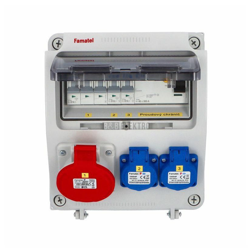 Zásuvková skříň IP54 2x230V/16A, 1x400V/16A/5p s jištěním 2xPL7-B16/1, 1xPL7-B16/3 a proudových chráničem PF7-40/4/003-A 245x215x155mm Famatel ZSF20100000.1 /3957