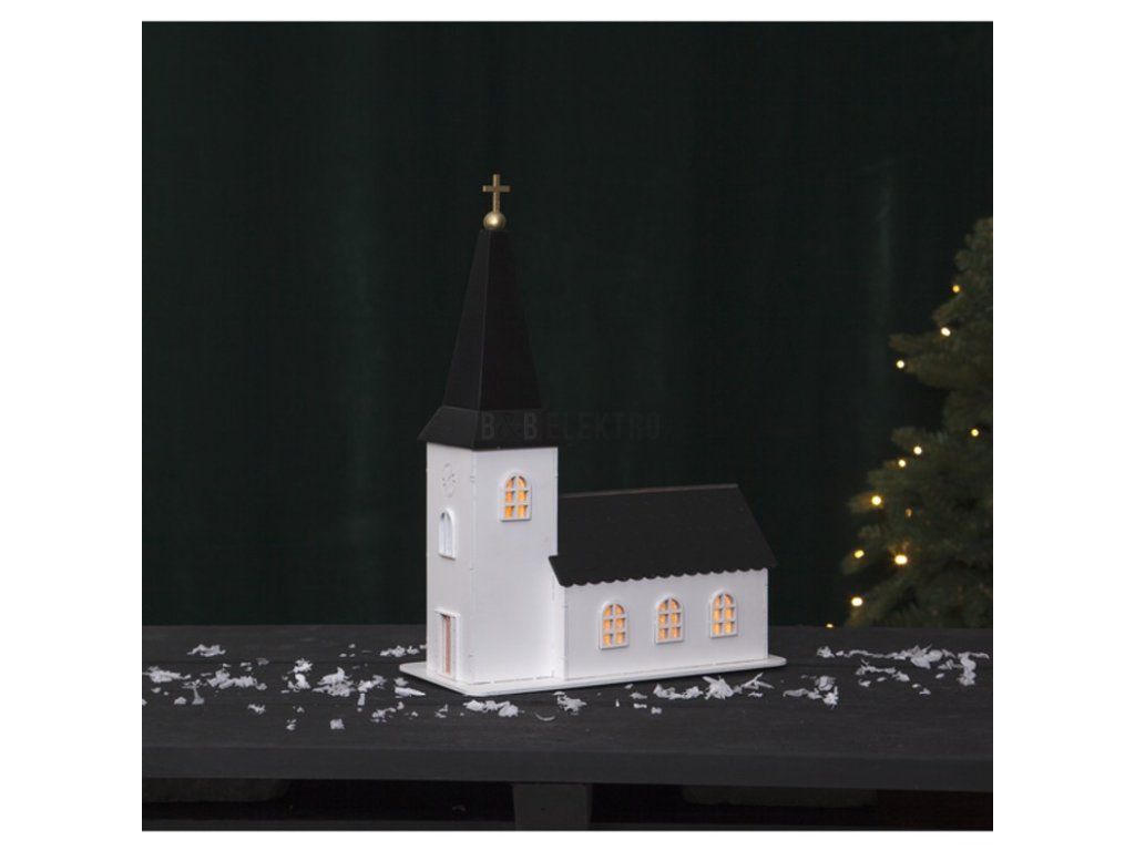 Vánoční kostel bílý na 3xAA baterie Nipeko 650-00