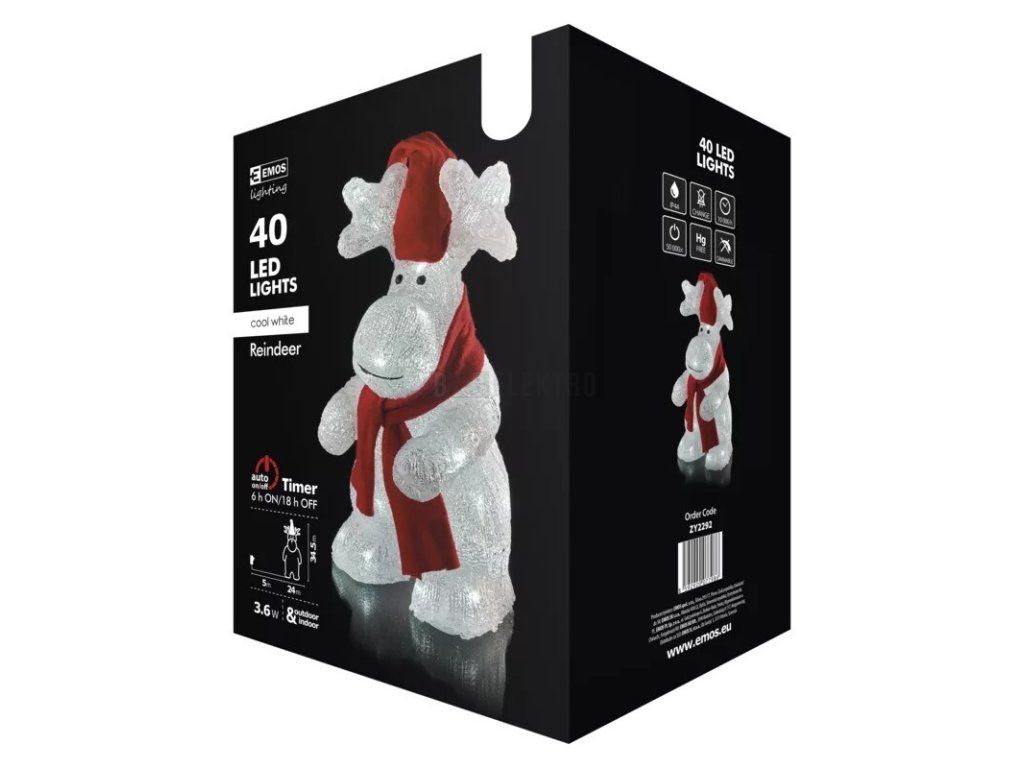Vánoční sob LED, studená bílá, výška 34,5cm, venkovní, EMOS DCFC08