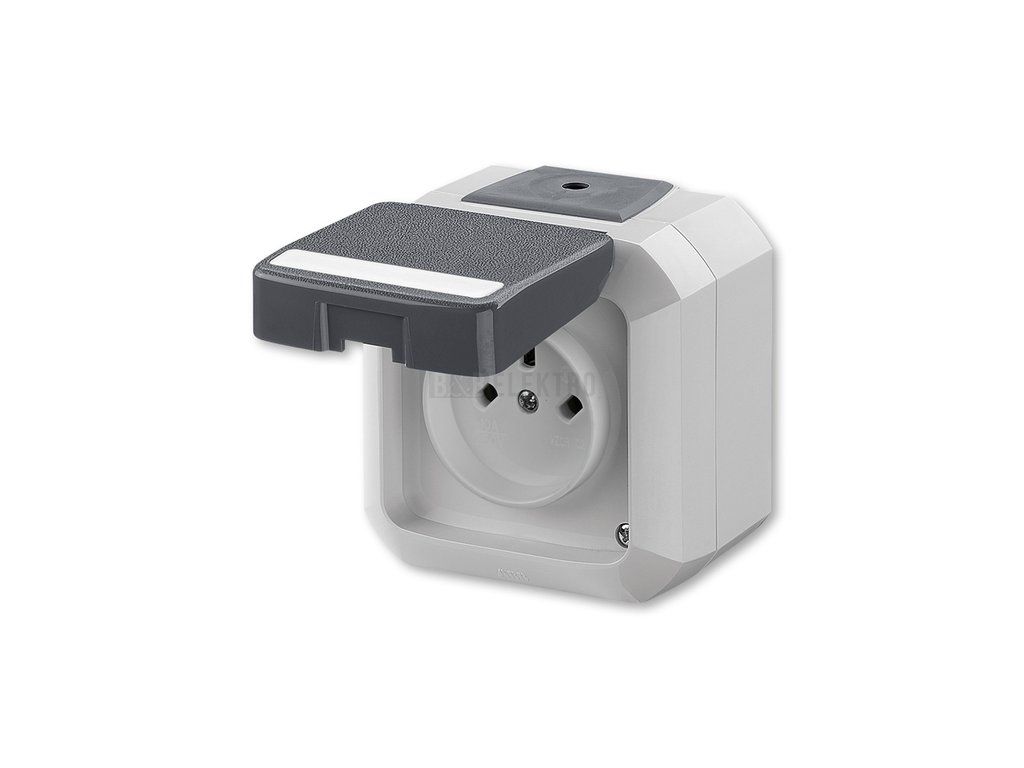 Variant+ zásuvka 5515N-C05523 S jednonásobná s víčkem, s popis. polem, vzor C2, IP 54 šed