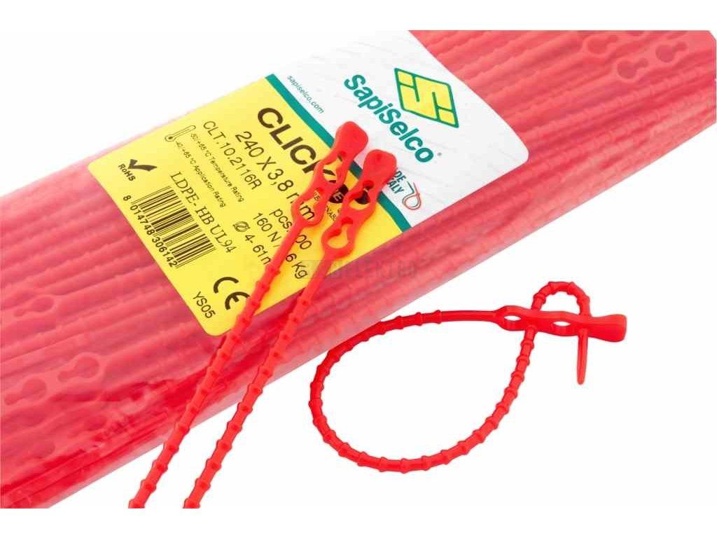 Vázací pásky otevíratelné CLICK 240x3,8mm, červená, (bal.=100ks) /CLT.10.2116R 1792061 ele