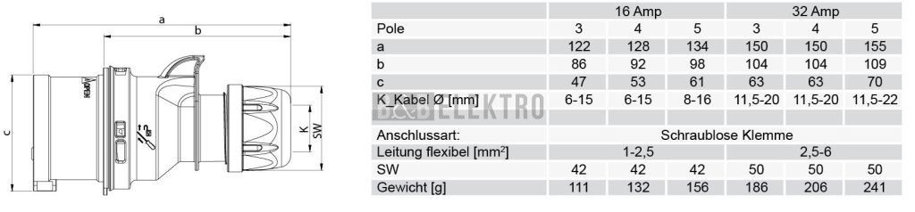 Vidlice 16A, 3pólová 230V IP44 TURBO TWIST bezšroubová svorka PCE 013-6TT
