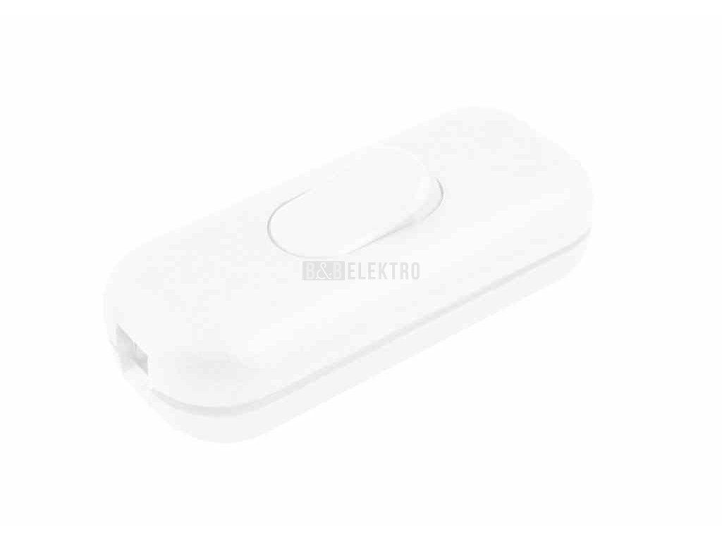 Vypínač plastový průchozí (300/1/V/P) - bílý, 1pólový, 2A, 250V, rozměr 60x26x15mm.
