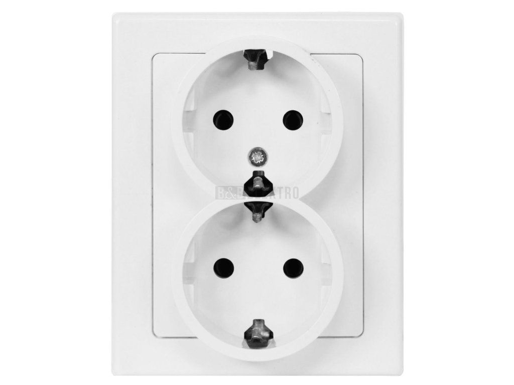 Zásuvka dvojnásobná SCHUKO je bez zemnícího kolíku, tento typ zásuvky se běžně nepoužívá v ČR. Nelze kombinovat do vícenásobných rámečků, zásuvka je dodávána kompletní.