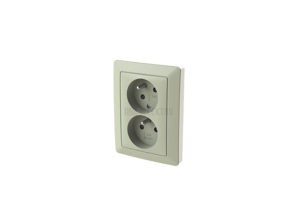 Zásuvka dvojnásobná s ochranným kolíkem a natočenou dutinou Zoni® v barvě olivová/bílá od českého výrobce ABB