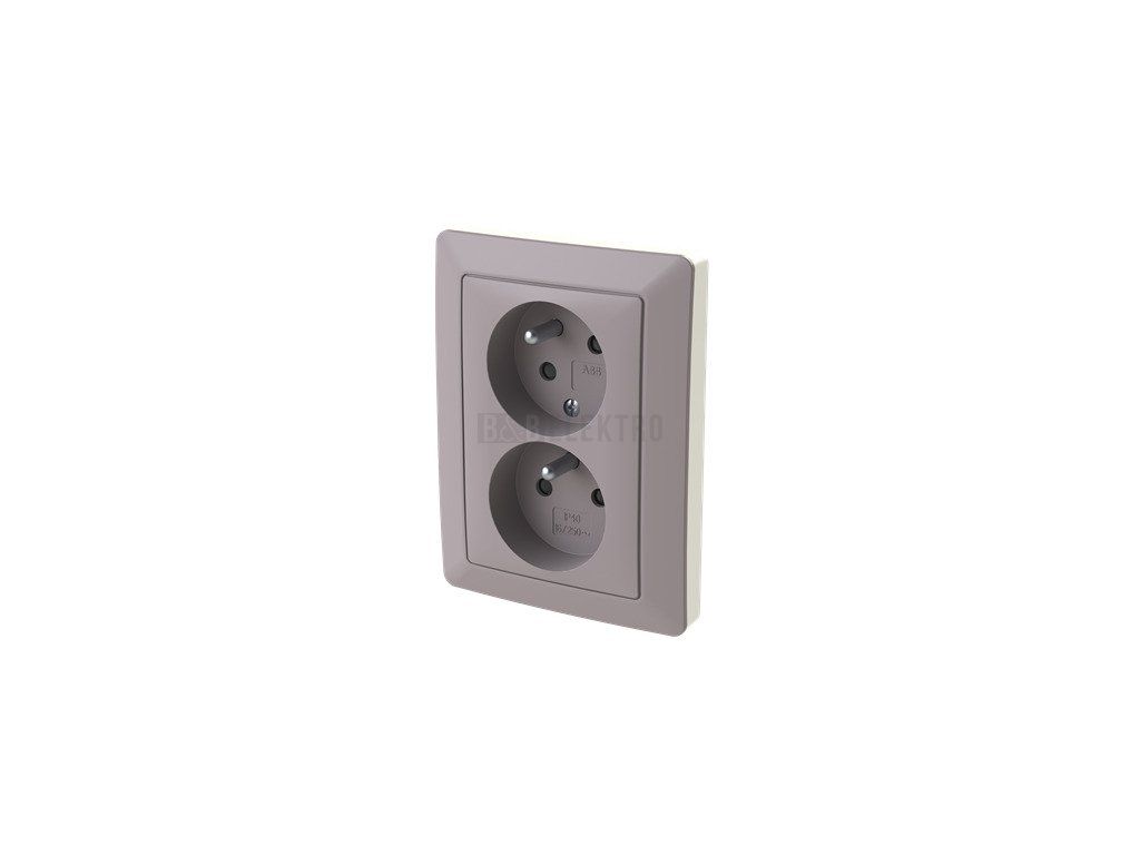 Zásuvka dvojnásobná s ochranným kolíkem a natočenou dutinou Zoni® v barvě greige/bílá od českého výrobce ABB