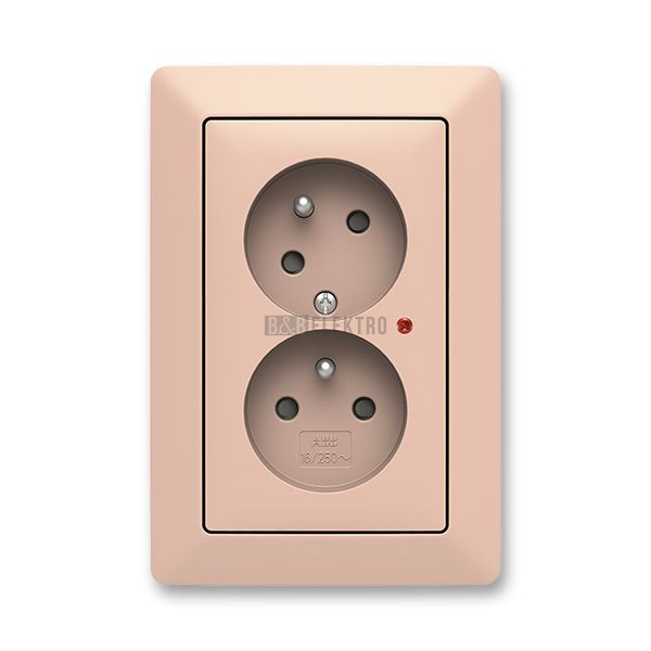 Zoni® zásuvka dvojnásobná s clonkami, natočenou dutinou a ochranou před přepětím 5593T-C02357 142 pudrová/bílá ABB