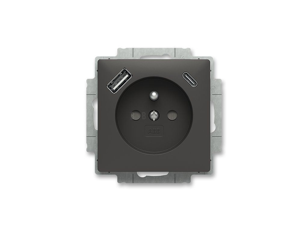 Zásuvka jednonásobná s 1xUSB-A, 1xUSB-C a ochranným kolíkem Zoni® v barvě matná černá od českého výrobce ABB