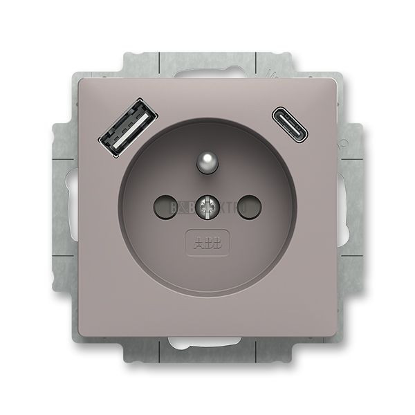 Zásuvka jednonásobná s 1xUSB-A, 1xUSB-C a ochranným kolíkem Zoni® v barvě greige od českého výrobce ABB